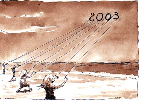 Voeux 2006 – Pendant mon année de diplôme aux Arts décoratifs de Strasbourg (Hear), après tant d’années de labeur à Lyon, souffler un peu enfin, prendre de la légèreté.