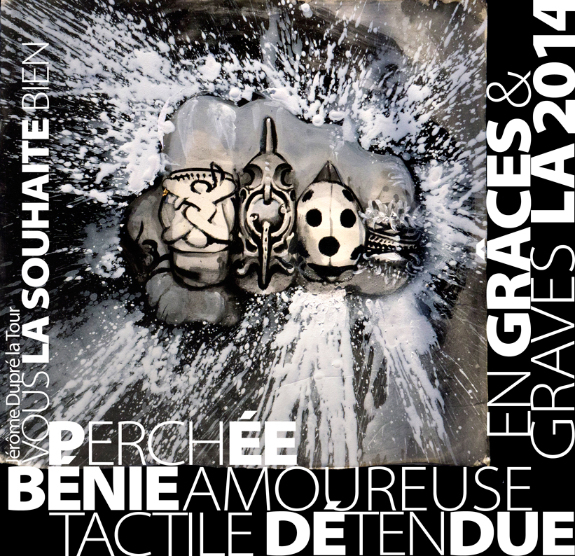 Voeux 2013 – Une de mes années les plus mouvementées et riches de mon parcours artistique, à la jointure de tous les arts : Arts graphiques, art de rue, modèle vivant, performances, expositions conceptuelles, et beaucoup d’enjeux autour de mon évolution au sein des marges, la constitution de l’association Lamartine.