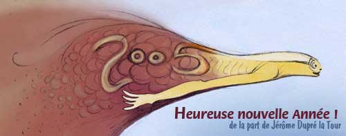 Voeux 2005 – 4ème année – diplôme en infographie/multimédia à l’école Emile Cohl (Lyon), s’extraire de soi pour aller vers la réalisation.