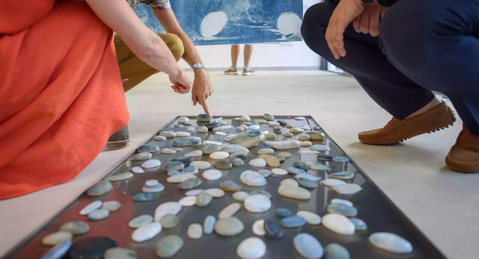 Voeux 2024 : Année de ma représentation par la Galerie Velychko à Chypre. Ici sur mon oeuvre « l’étang de nous » en compagnie de la galeriste, le curateur et moi.