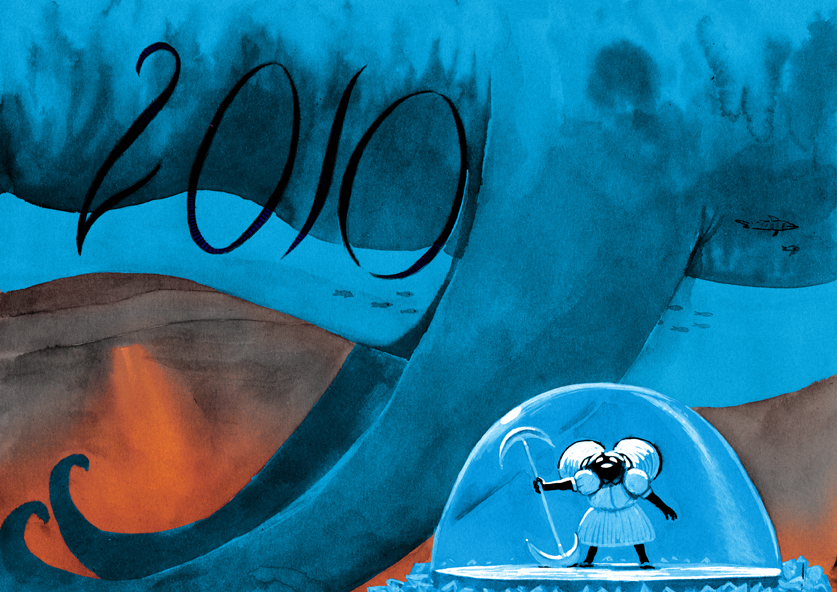 Voeux 2011 – Année romanesque : Dessin réalisé qq jours après l’incendie de la friche RVI à Lyon. et 2011 est l’année où j’ai rejoint réellement le collectif Abi/Abo, embarqué dans l’aventure du relogement d’une partie des artistes du CFA RVI à la Friche Lamartine, Lyon 3ème.