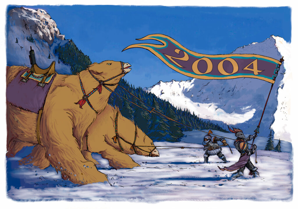 Voeux 2004 – 3ème année d’études à l’école Emile Cohl (Lyon) : la fierté d’avoir appris à dompter le dessin, et l’infographie.
