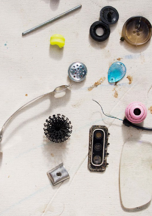 Deuxième expo de couloirs, rassemblant un grand nombre d’oeuvres fixées aux murs, les visiteur·euses ont été invité à se pencher sur le fossile contemporain : du dérisoire à la quête de sens, un voyage sur les traces de notre quotidien sous forme d’assemblages et d’installations murales.